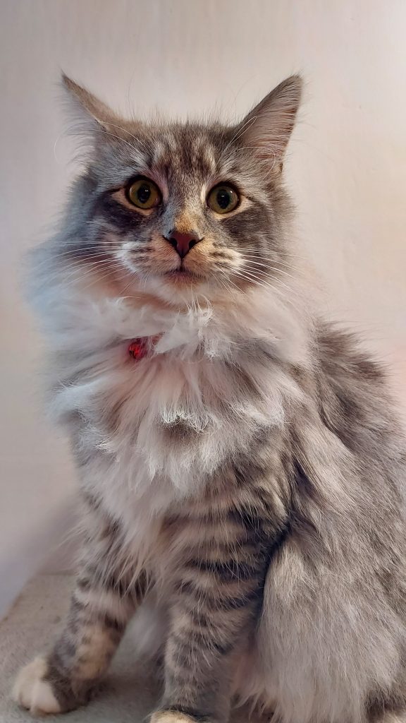 Pour sa première participation à un concours Saga (8 mois) a été jugée Excellent 1 par 2 juges du Loof à l’exposition de Nantes en 2021. Elles ont mis en avant son corps bien charpenté, ses pattes fortes, la tête dans les standards bien triangulaire, des oreilles larges à la base et bien placées, un bon marquage mackerel avec une bonne répartition du blanc, une fourrure douce et bien dense et un très beau sous-poil blanc.